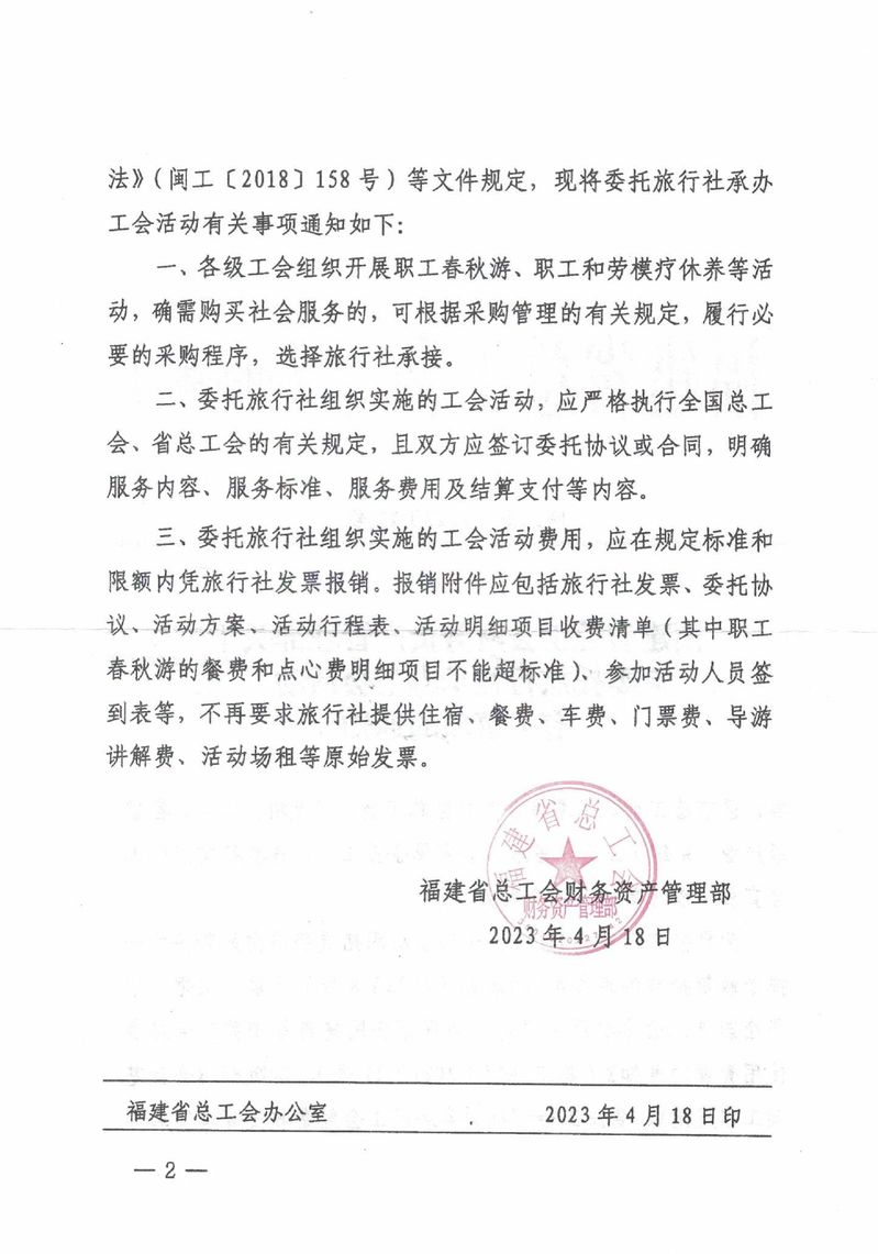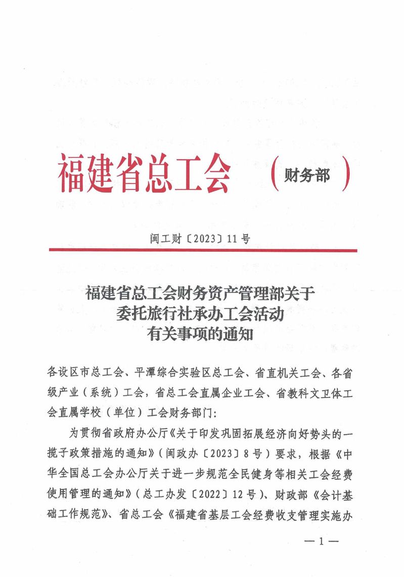 福建省总工会财务资产管理部关于委托旅行社承办工会活动有关事项的通知